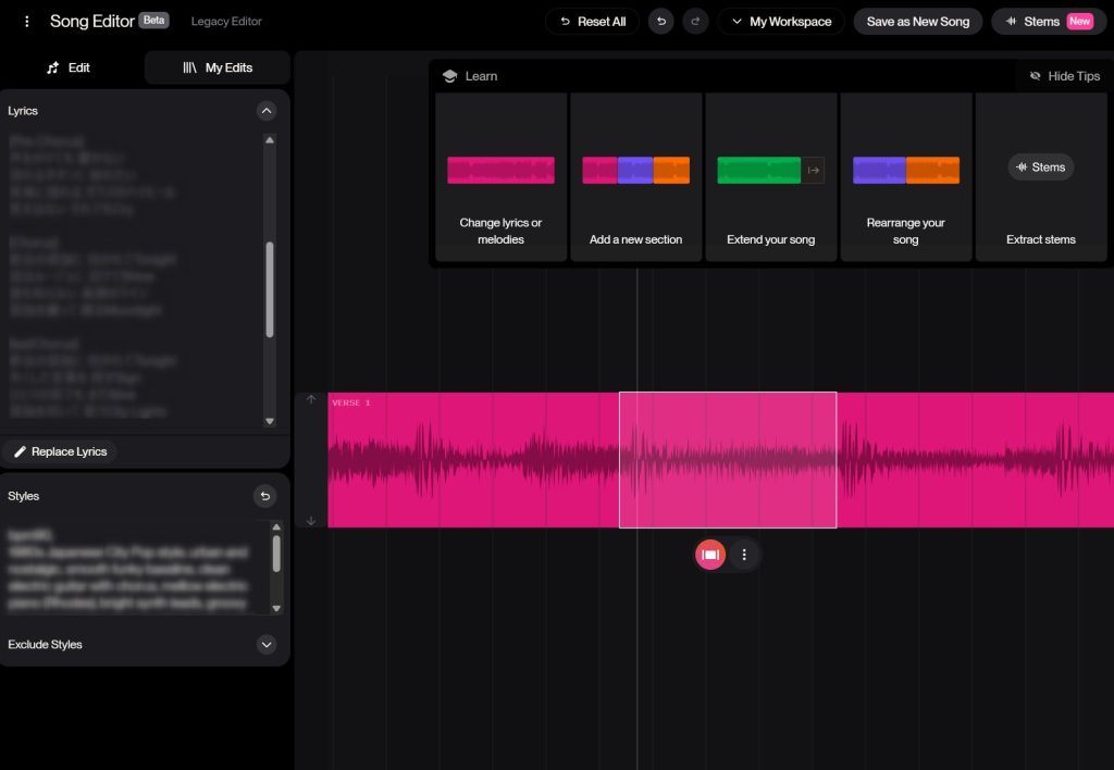 前回の歌詞が残ったまま曲が生成されてしまうなど、コピペミスが起こりづらくなります。