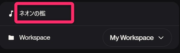 Workspace上の欄にタイトルを入れておくと、入力したタイトルで曲が生成されます。