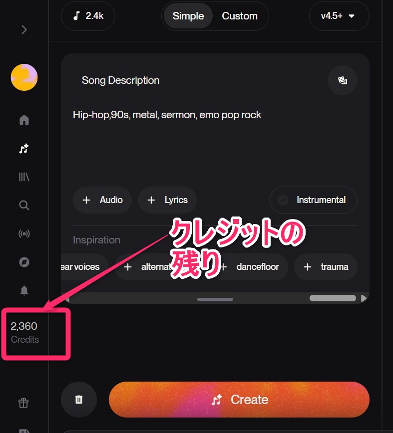 SUNOは1生成するのに10クレジットを消費するため、クレジット残高との戦いになります。