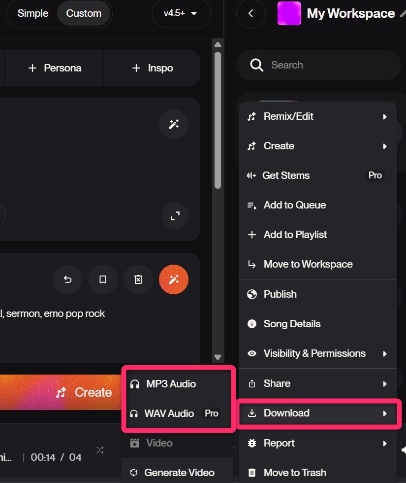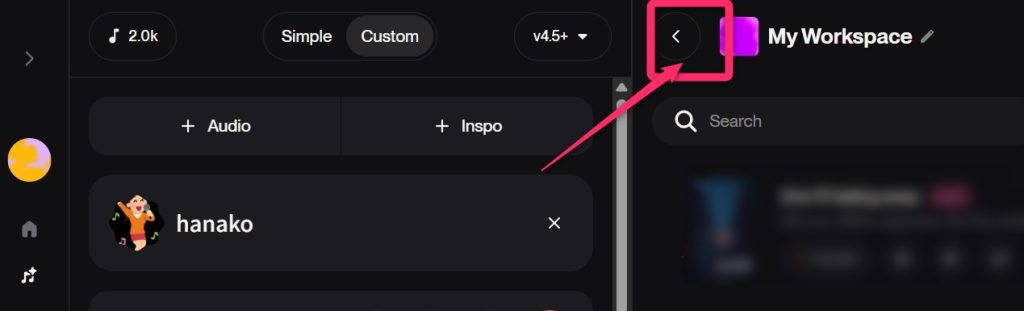 SUNO AIにはWorkspaceというフォルダで曲を管理できます。