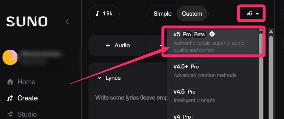 なお、SUNO有料ユーザーのみが利用でき、無料ユーザーは選択ができません。