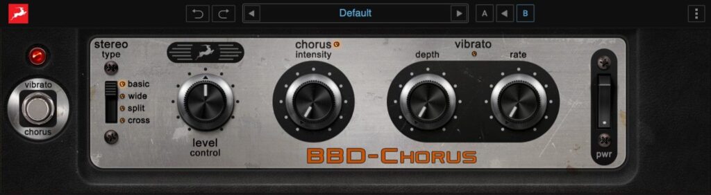 BBD-Chorus : 70年代のビンテージ・コーラスペダルを再現。ギターはもちろん、シンセにも効果的です。