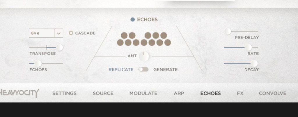 ピアノの美しいサウンドに、HeavyocityのConvolveやテクスチャがレイヤーされてより幻想的な音になります。