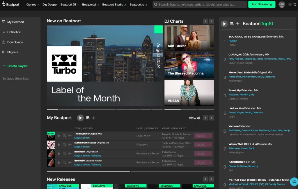 - ストリーミング: Beatportのサブスクリプションサービスに加入すると、購入した楽曲だけでなく、膨大なカタログの楽曲をストリーミングで聴くことができます。