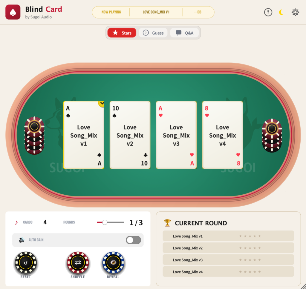ポーカースタイルのUIでブラインドテストができるツール。
