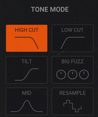 | RESAMPLE | 低いサンプル・レートでのデジタル・サンプラーをエミュレートします。TONEノブを使用して、レートとアーティファクトの強さをコントロールします。 |