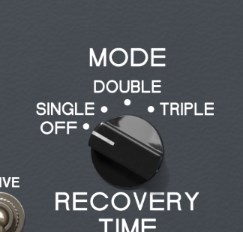 モードをトリプルに設定し、リカバリーを高速にすると、ゲインを上げると、コンプレッション回路がオーバーロードし始め、ポンピンググリッチのようなサウンド効果が発生します。
