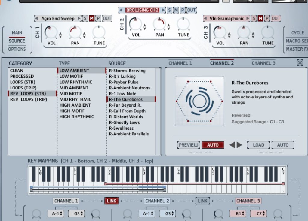 またHeavyocityのオーケストラ音源に収録されているループデザイナーの組み合わせは土台にしたり、ちょっと違う要素を乗せるだけで曲が完成してしまうとても便利な時短システムです。