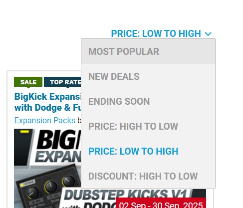 Price Rangeは7段階あり、好きな価格帯を絞り込みできます。Under ¥1000の場合は1000円以下のプラグインが絞り込みされます。