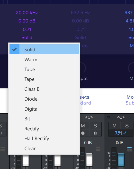 古典的アナログの再現:Tube, Warm Tube, Tape, Diode, Solid の使い分け