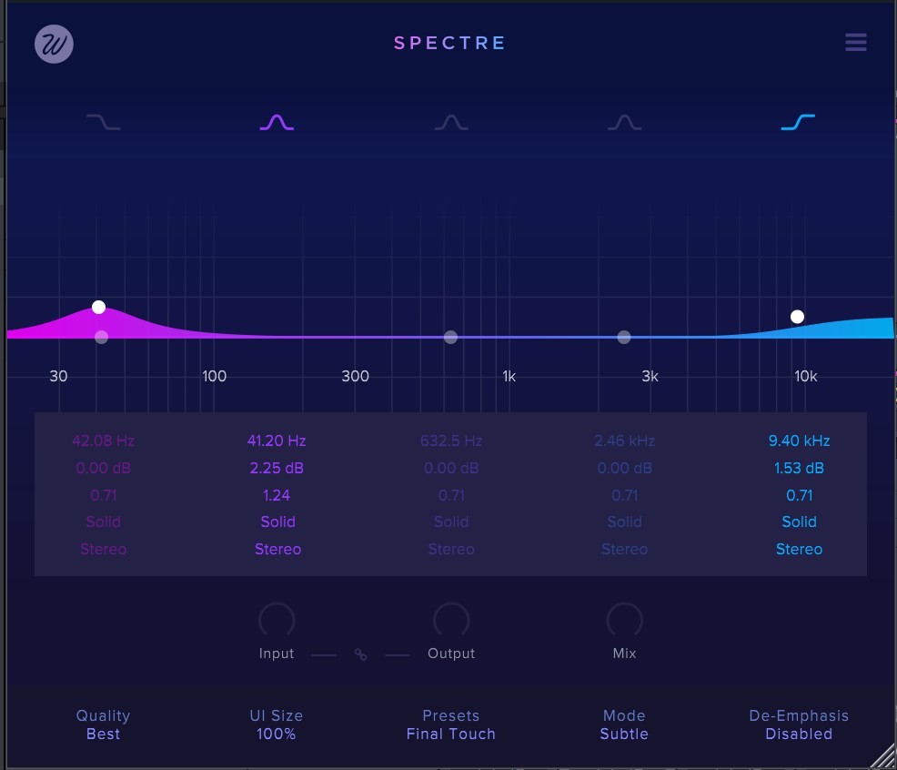 Wavesfactory のSpectre はマルチバンドエンハンサープラグイン。音抜けが悪く感じるトラックに使うと見違えるように音抜けが良くなるミックスに便利なプラグインです。