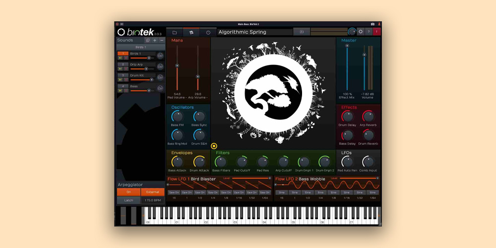 tracktion BioTek2は動物の声や自然環境サンプルといったアンビエント音をサンプリングしてシンセ音と混ぜていくユニークなシンセ。
