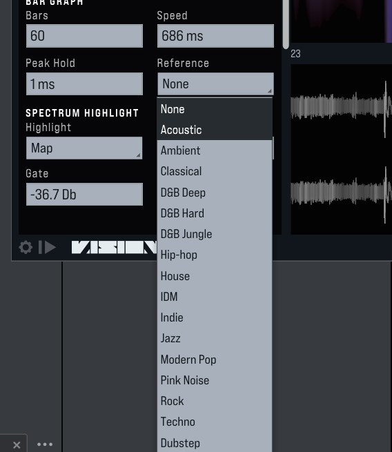 バーグラフでは音楽ジャンルに対してのプリセットが用意されていて、そのジャンルらしさを表現する目安の周波数帯を表示させ現在の曲の状態と比較できます。