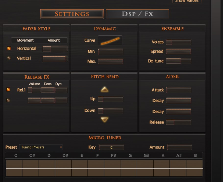 Settingsの画面ではADSRやマイクロピッチが設定できます。