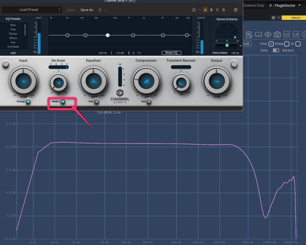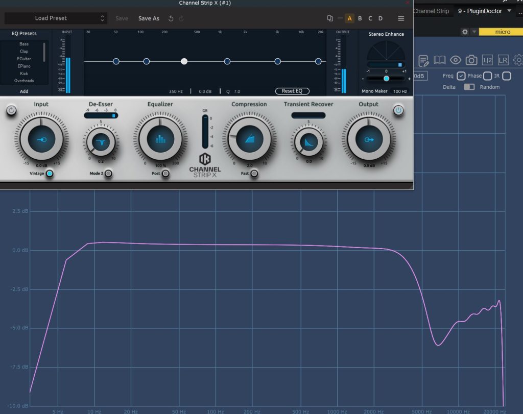 De-Esser,Equalizer,Compresssion,Transient Recover,Stereo Enhancerがついたチャンネルストリップ。