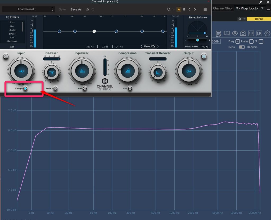 VintageをOnにするとAPI のプリアンプ エミュレーションが有効になります。