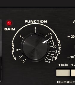 Functionのコントロールを左へ回していくとエキスパンダーに、右へ回していくとコンプレッサー&リミッターとし使えるようになる仕様です。