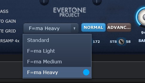 • ASSISTボタンを押し、NORMAL(単一処理で自然にかける用途)かADVANCED(後段にコンプをブレンドするか、タイトなサウンドを目指す用途)を適用する。