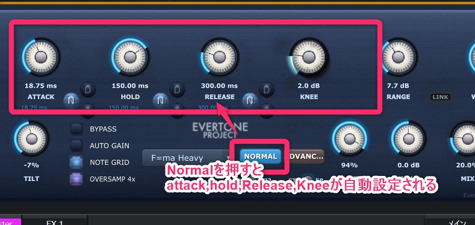 コンプのATTACK,HOLD,RELEASEが厄介です。