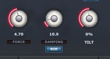 最後に紹介するのが、このプラグインの最も「エキサイティング」なノブ、「FORCE」です。これは単なるメイクアップゲインではありません。物理演算されたダイナミクスに対して、さらに「どれだけの力でスピーカーのコーンを押し出すか」を決定するパラメーターです。