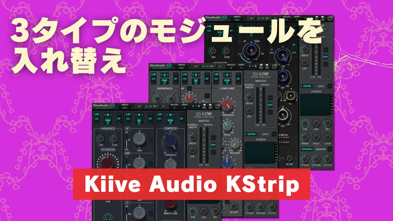 Kiive Audio KStripは 3つのモジュール(サチュレーション・コンプ・EQ)を3つの異なる回路から選択して使える柔軟性あるチャンネル・ストリッププラグインです。