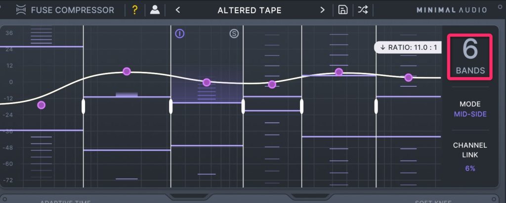 圧縮の強度を低周波数または高周波数に傾けることで、すべてのバンドの効果を同時に調整します
