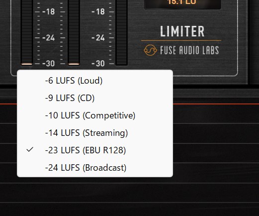 対応するLUFS値がわからないときはメーターをクリックすると下の画像のようなガイドが表記されます。