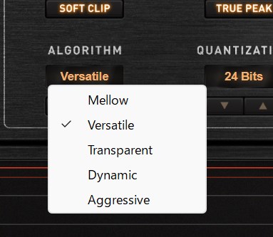 | リミッターアルゴリズム | 5つ – Meloow – Versatile – Transparent – Dynamic – Aggressive |
