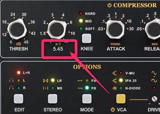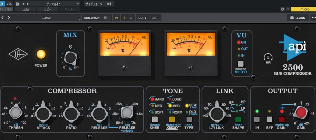 コンプを使ったトーンに関してはUAD版の方が単純でわかりやすいです。作りたい音色に変化させるときは簡単。
