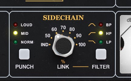 LINKノブはチャンネル間のステレオリンク量を調整します。