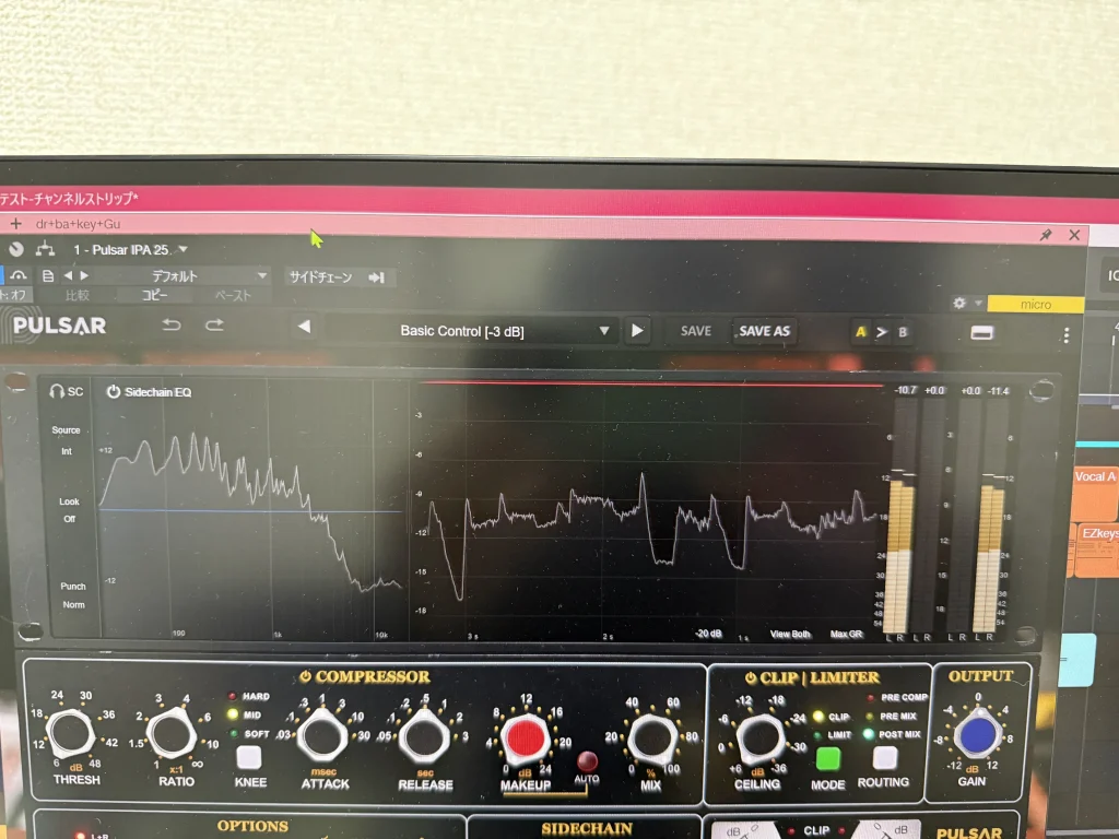 → サイドチェインEQで低域をカット(ハイパス)しておくと、