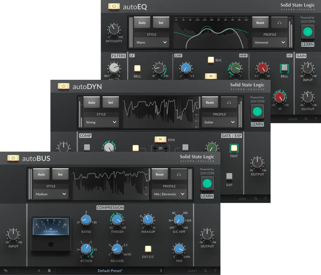 SSL autoSeries Bundleは、ミキシングに不可欠な3つの主要プラグインで構成されています。