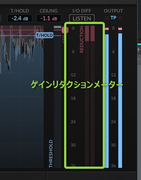 CeilingとThresholdがビジュアライザー横にある縦軸メーター上でも動かせるようになっていて、このUIがとてもわかりやすいです。どこからリミッターがかかって、天井値はどこか?を直感的に判別できます。