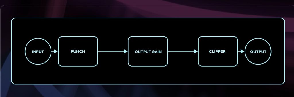 パンチ モジュール、出力ゲイン、オプションのハード クリッパーが直列に接続されています。