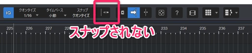 大前提としてStudio Oneのスナップ機能のショートカットは「N」である。