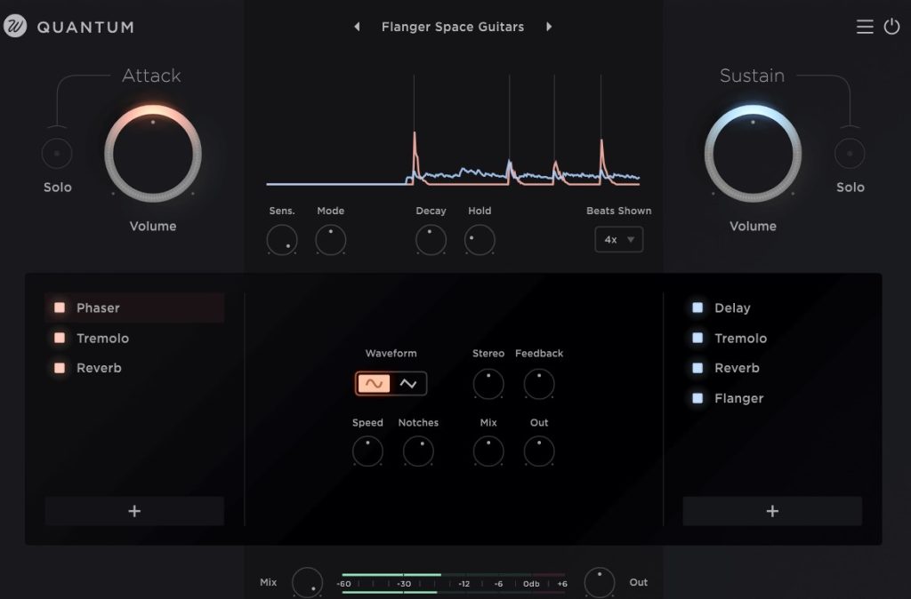 Quantumはトランジェントシェイパーで、Attack・Sustainに分離した後、それぞれの信号にエフェクトを掛けられるという他にはないアイデアプラグイン。