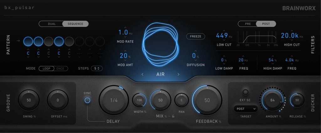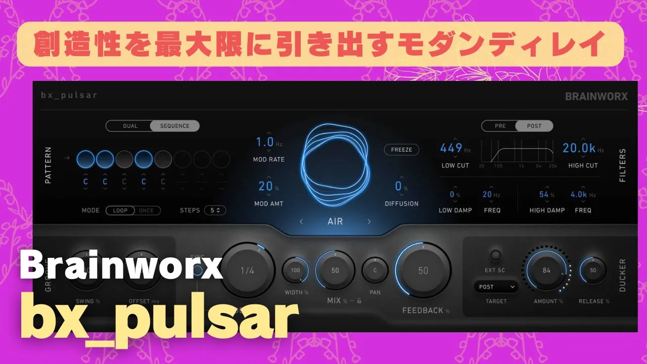 bx_pulsarは、Brainworxの新たなフラッグシップ・クリエイティブ・ディレイ・プラグインです。頼りになるプロセッシング・プラグインに匹敵する即戦力と高音質を備えた、多用途でクリエイティブなパワーハウスです。5つのコア・ディレイ・モードにより、多彩なディレイ・スタイルとカラー・オプションを指先一つで操作できます。さらに、柔軟な8ステップ・ディレイ・シーケンサー、複数のステレオ・モード、内蔵サイドチェーン・ダッキング、フリーズ、グルーヴ・コントロールなど、現代のディレイの限界を探求したいプロデューサーやミュージシャンにとって理想的なツールセットを提供します。