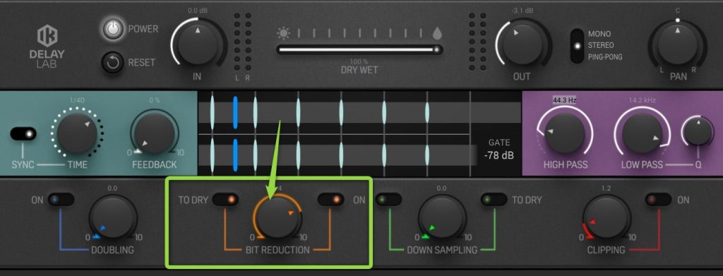 ディレイにビットクラッシュをかけるタイプはそう数がないため、ちょっと変わったサウンドに仕上げられます。