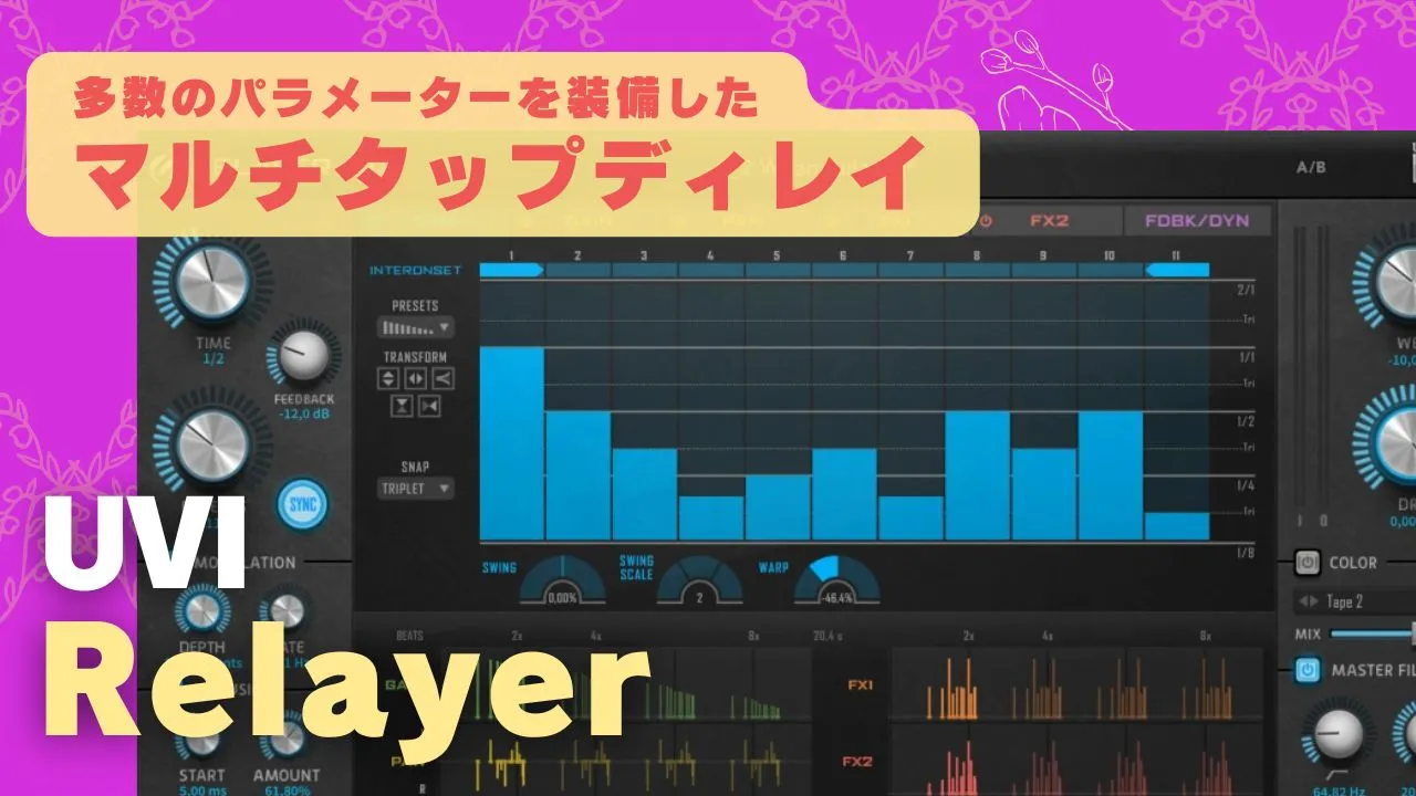 UVI Relayerはディレイを使った繰り返しの音をを細かく制御したい人に向いているエフェクト。
