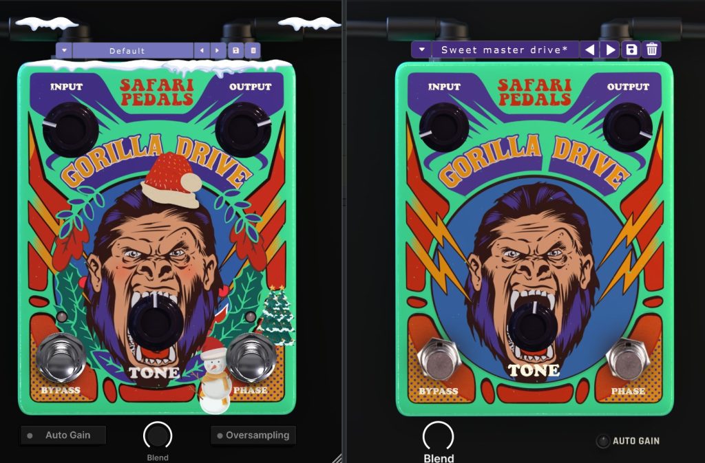 Gorilla Drive限定版「Santa Edition」があります。Santa EditionはSafari Pedals のEverything Bundle所有者向けのボーナスプラグインという位置づけになっています(2025年現在)