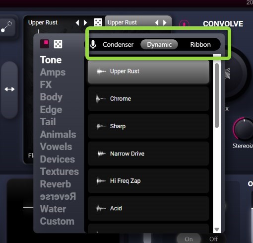 Condenser,Dynamic,Ribbonとマイクのタイプを選べるのは前バージョンと共通です。