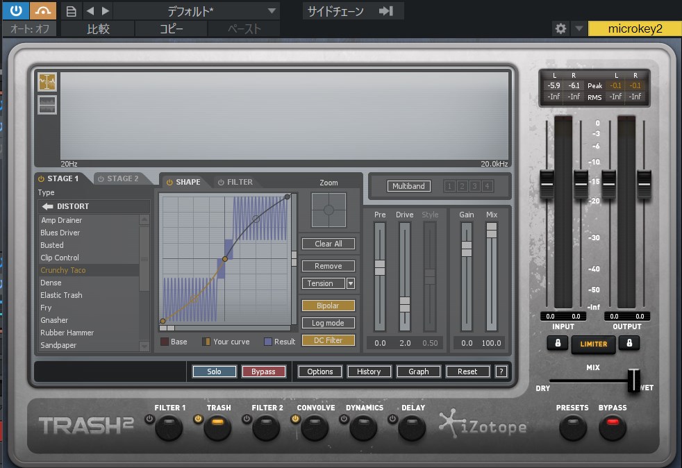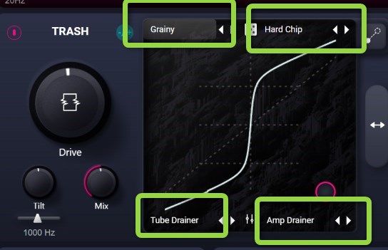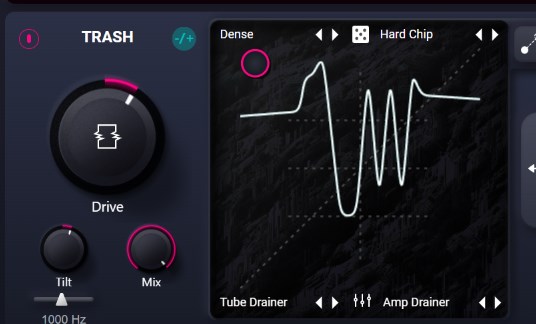 Trash は、ドライブ/ディストーション/サチュレーション/ファズといった歪の音を作れるだけでなく、