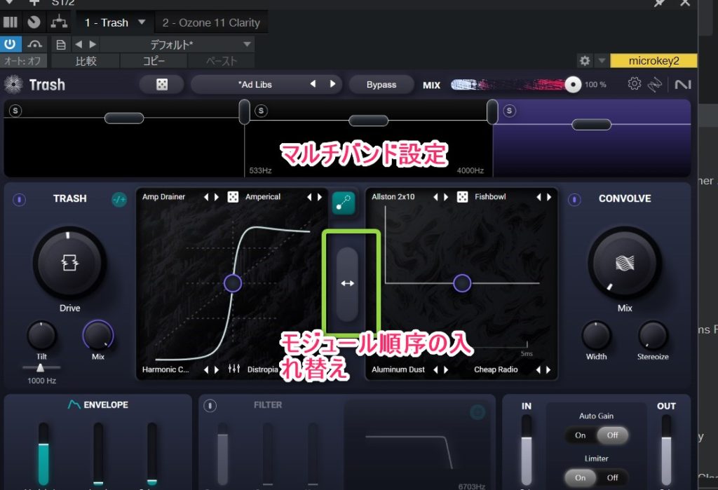 帯域ごとにTrashとコンボリューションをON/OFFできるのと