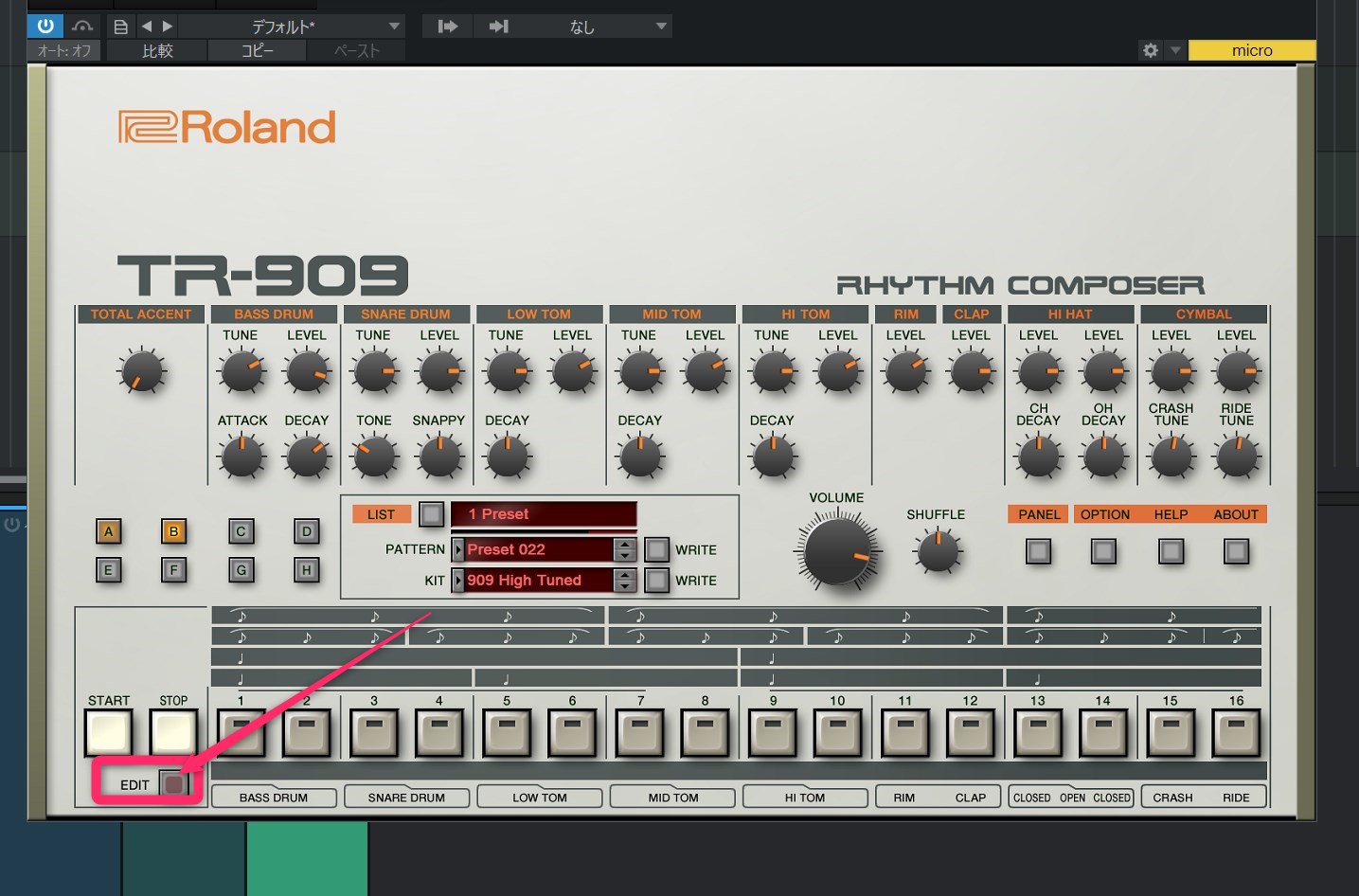 Editのボタンを押すとシーケンサー画面が表示されます。