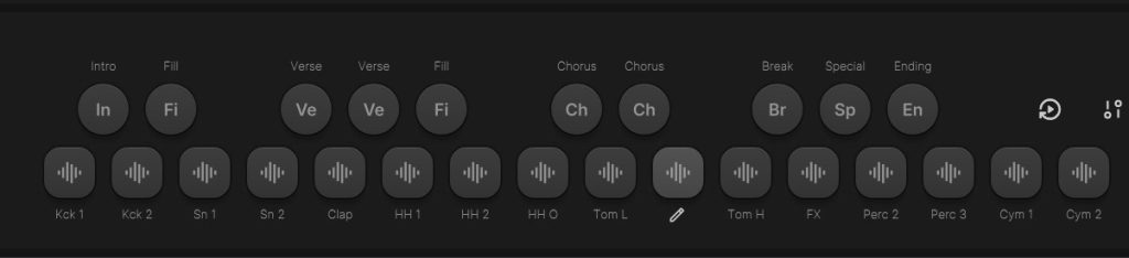 プリセットを切り替えると割り当ててあるドラムキット・フレーズ設定が変わるので、フレーズのカスタマイズに面倒くささを感じる場合は、好みのプリセットをお気に入り登録して使い回す方が快適かもしれません。