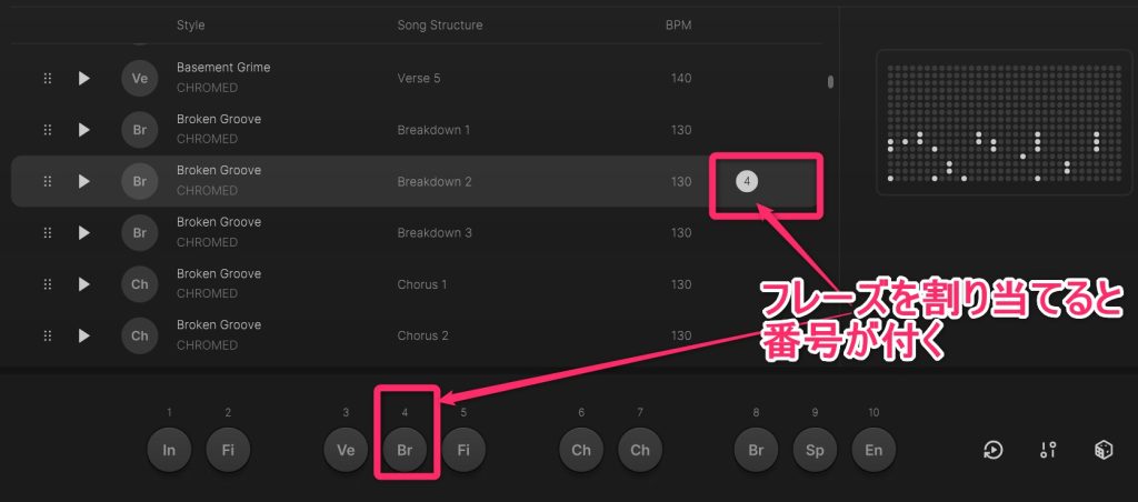軸となるVerse,Chorusの上にFillやSpecialのフレーズが重なるとFillやSpecialが優先されます