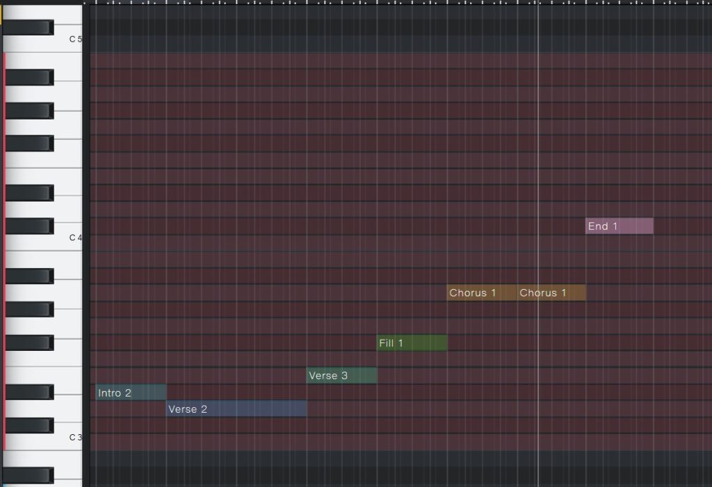 Intros⇒Fills⇒Verses(A,Bメロ)⇒Choruses(サビ)とつなげていくだけで曲に曲の構成が出来上がるわけです。とても簡単ですよね。