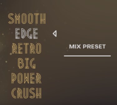| CRUSH | 誇張されたコンプレッション、中程度の EQ、そして微妙なディストーション。 |