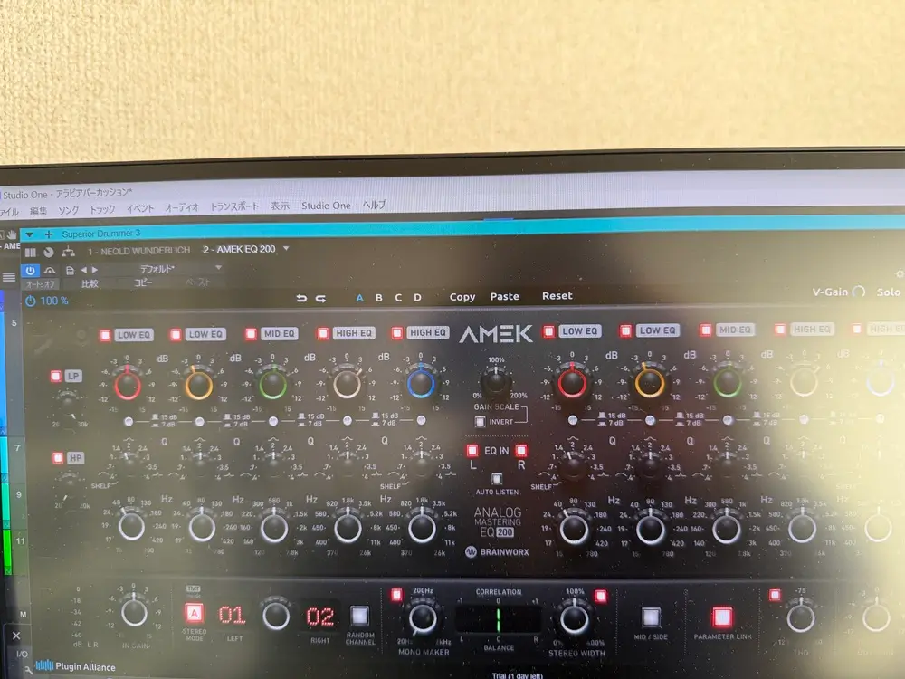 AMEK EQ 200はシルキーだとかスムーズといった表現がされるのがよく分かる体験でした。荒い角が取れてなだらかに聞こえてきます。仕上げのマスタリング用途というのもよく分かるクオリティ。