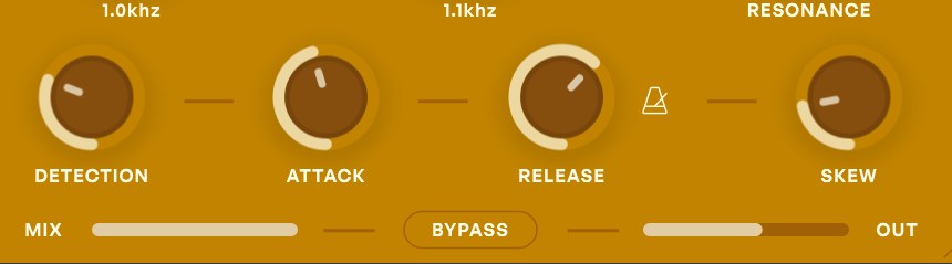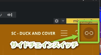 右上のリンクのボタンがサイドチェインモードをONにするスイッチ。このスイッチがONのときはサイドチェイン入力の音を検知しないと音が鳴りません。